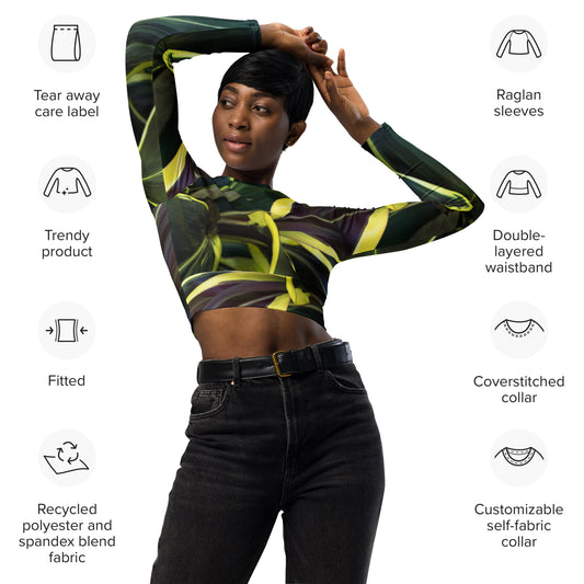 Hawaiian Ti Plant Recycled long-sleeve crop top